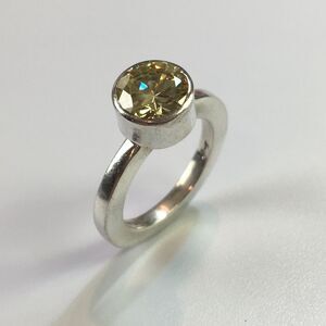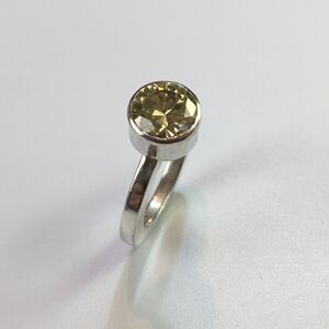 This pre-loved Kalibré cocktail ring is a stunning piece of fine jewelry that will make a perfect gift. The ring features a round 7mm Citrine gemstone in a bezel setting, set in Sterling Silver with a 925 metal purity. The ring is signed by the designer Harlene Korey and has a unique art theme. The band width is 2.5x3mm and the ring is a US size 5. The Kalibre Citrine ring was crafted in the USA, with the jeweler having been based in Scottsdale, Arizona.It is in good condition with light signs of wear such as scuffing on the band. This unique statement ring is perfect for any occasion and will complement any outfit. The ring is made from high-quality metal and gemstone materials and is sure to last for years to come.