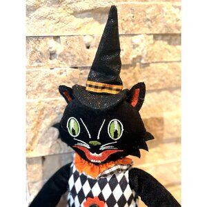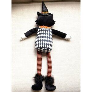 Harlequin Cat Halloween Shelf Sitter Doll Dangly Leg Decoration 21”