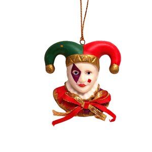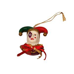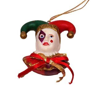 Harlequin Jester Christmas Ornament Clown Hand Painted Bisque Porcelain