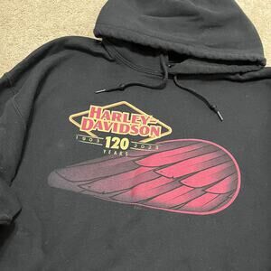Harley Davidson 120th Anniversary Black w/ Red Hoodie Sweatshirt Large