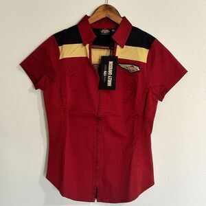 Harley Davidson 120th Anniversary Elemental Zip Front Shirt Merlot Women's L NWT