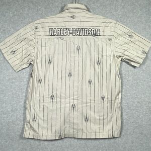 Harley Davidson 2006 Men Sz M Button Down Short Sleeved Stripe Shirt Embroidered