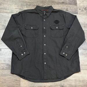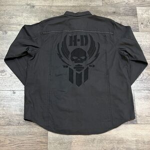 Harley Davidson 2014 Black Denim Embroidered Skull Logo Shirt Black - Men's 2XL