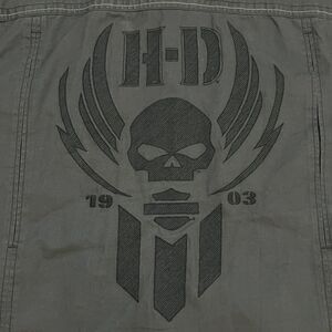 Harley Davidson 2014 Black Denim Embroidered Skull Logo Shirt Black - Men's 2XL! Shirt is in excellent pre-owned condition as can be seen in the photos. Please review all photos prior to purchase as they are a big part of the description and returns are not accepted. Shirt will be shipped same/next day via USPS. Thanks! Check out my other listings for tons of great vintage and modern clothes and shoes. Thanks! 1039G