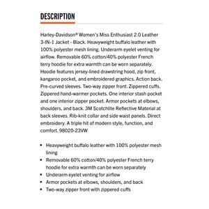 Harley Davidson 3 in 1 leather motorcycle jacket large NWT women's