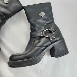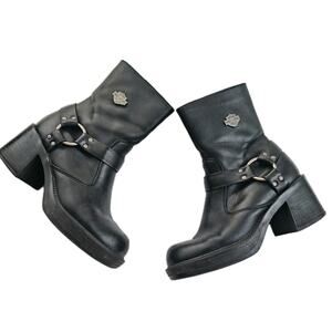 Harley Davidson 81026 Pavement Black Leather Women's Harness Boots Size 6 Biker