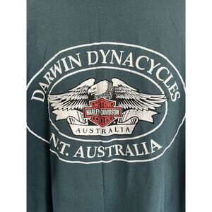 Featured item: a rare design, vintage 1990s, Harley Davidson Double Sided Graphic T-Shirt - Darwin Dynacycles of Australia.