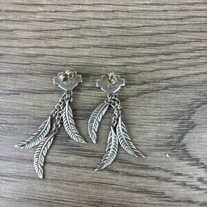 Harley Davidson 925 Sterling Silver Bar & Shield Triple Feather Dangle Earrings