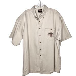 Harley short sleeve button front casual tan shirt. Sturgis 95 years of service. Size XL