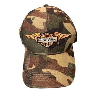 Show off your biker style with this Harley Davidson camo hat. Adjustable for a perfect fit, it's branded for authenticity. Ideal for outdoor adventures or casual wear.