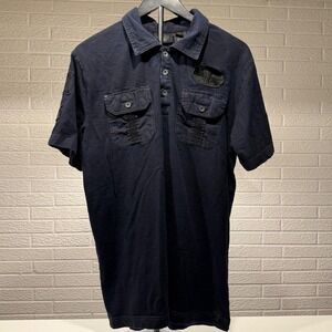 Command attention with this rugged Harley Davidson polo shirt, a statement piece that blends classic style with rebellious flair. A deep navy blue hue serves as the canvas for meticulously crafted patch details, lending a touch of individuality and character. The functional pockets add utility, while the contrasting textures create visual interest. From weekend getaways to casual gatherings, this polo ensures you'll make a lasting impression.