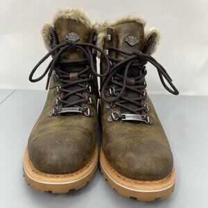Harley Davidson Benton Boots Faux Fur Distressed Biker Leather Brown Womens 9