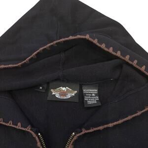 Harley Davidson Black Cotton Full Zip Hoodie Sweater Medium Brown Back Graphic