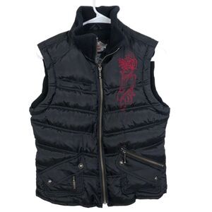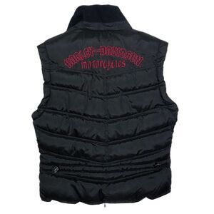 Harley Davidson Black Embroidered Zip Up Puffer Vest Women's Size Small?