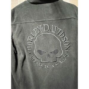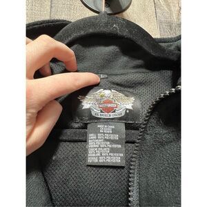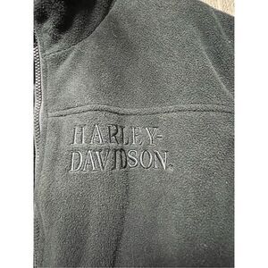 Details: full zip, embroidered front and back, lightweight, fleece material, 3 zip front pockets