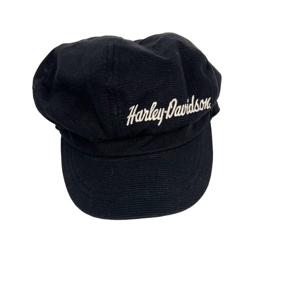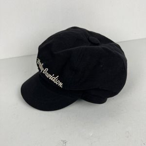 Harley Davidson Black Newsboy Cadet Biker Hat Cap Embroidered Spell Out Womens