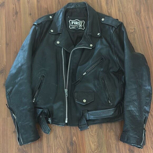 First vintage Black leather Moto jacket. 46 (3xl) motorcycle jacket biker jacket