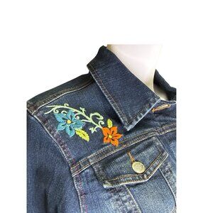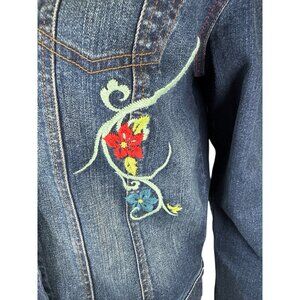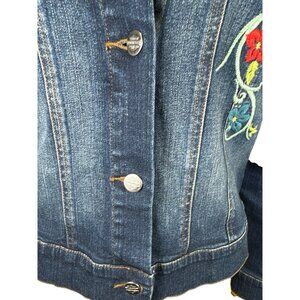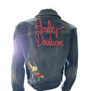 Harley Davidson Blue Jean Denim Jacket Embroidered Flowers & Bird Womens Sz L
