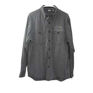 Harley Davidson Button Down Long Sleeve Embroidered Striped Shirt Size M Black G