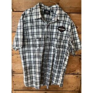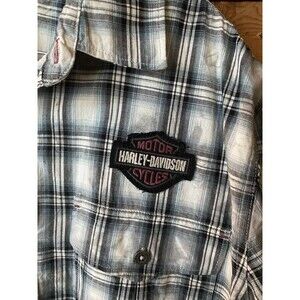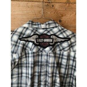 Harley Davidson Button Up Men’s L Plaid Winged Raw Edge Embroidered Logo