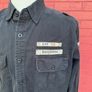 Harley Davidson Button Up Shirt Black Patchwork Motorcycle Graphic Mens Large