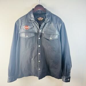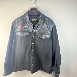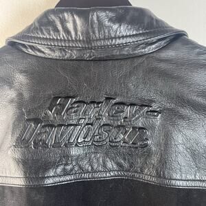 Harley Davidson Canvas Leather Jacket Size Medium Biker Embossed