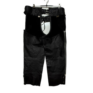 Harley Davidson Chaps Mens XXL Black Leather Belted Motorcycle Biker USA