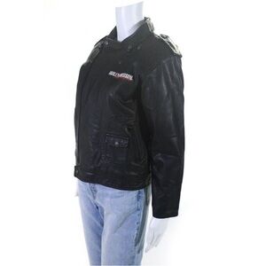 Harley Davidson children’s Faux Leather Embroidered Motorcycle Jacket Black Size 12/14