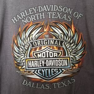 Dual sided graphic tee from Harley Davidson. Tag has been removed, but I'm 95% sure this shirt is was made by HD as my Dad was a member of this chapter.