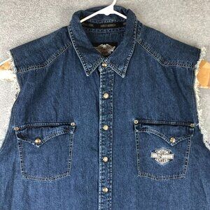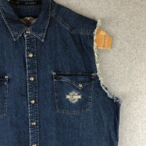 Harley Davidson Denim Vest Adult 3XL XXXL Cut Off Sleeveless Eagle Motorcycle