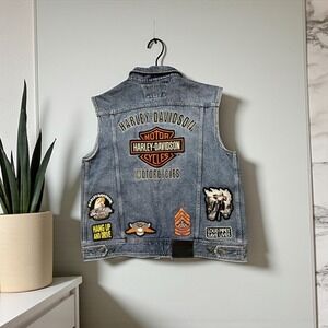 Harley Davidson Denim Vest Motorcycle Biker Patches Flags Mens Size L