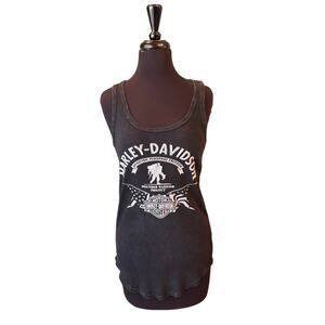 Harley Davidson Distressed Black Tank Women’s L Wounded Warrior Style 99061-17VW