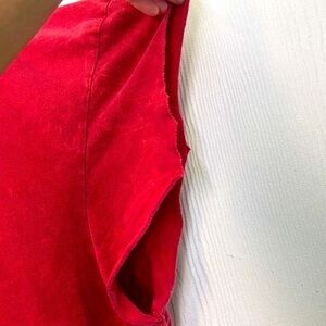 Sleeves are cut and seam of bottom of shirt are cut along with one hole in back of shirt see pictures meant to be distressed