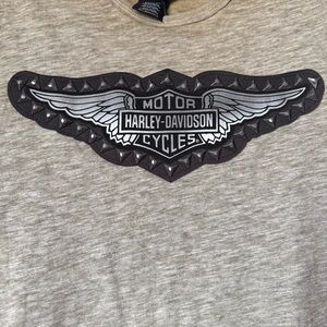 Harley Davidson Distressed Studded Wing Tee NWT Sz Large. Tan/Cream