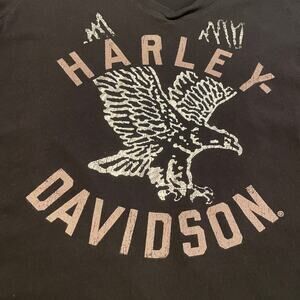 Harley Davidson Eagle Graphic V Neck Tee Shirt Womens 2XL XXL Black Biker