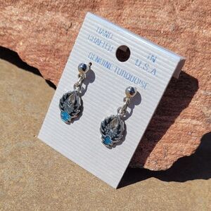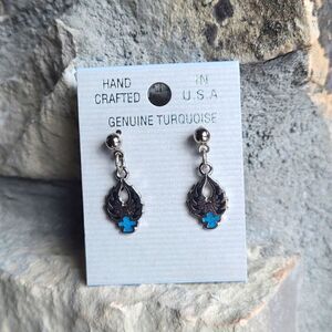 Harley Davidson Earrings with Turquoise Inset Dangle Shield Wings