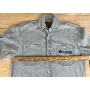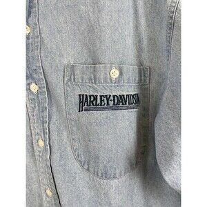 Harley Davidson Embroidered Logo Long Sleeve Button Up Denim Shirt Blue Mens S