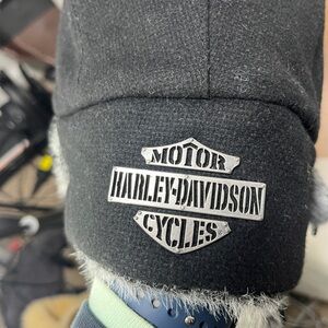EUC Harley Davidson aviator style flap hat. ears have holes for better hearing that have a flap that can be secured open or closed. Adjustable clip chin strap. Day fur edging mixes with quilted interior for extra warmth during those chilly rides. No noted flaws.
