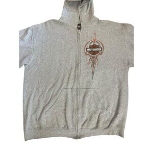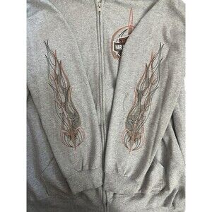 Harley Davidson Flame Sleeve Graphic Full Zip Hoodie Skull Wings Grunge Abstract