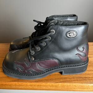 Harley Davidson Flaming Side Lace Up Leather Motorcycle Boots Grunge Y2K Punk