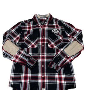 Harley Davidson Flannel Red Plaid Elbow Patch L/S Button Down Shirt Men's Sz L