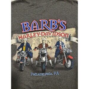 Barb's Philadelphia Pennsylvania Founding Fathers presidents On Motorcycles with constitution on the background. Very different than your typical Harley shirt. Perfect for any rider or casual fan or collector. No rips, no holes, no tears. See pictures for personal opinion on condition and measurements.