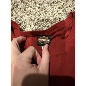 Red Harley Davidson free to ride T shirt no flaws that I can see, still in really good condition. Maybe worn a handful of times