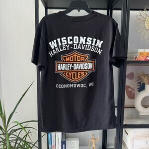 Harley Davidson Freedom USA Flag Eagle Oconomowoc Wisconsin Graphic T-Shirt S