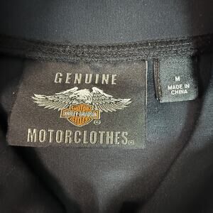 Harley Davidson Genuine Motorclothes softshell jacket in black with HD graphics on the sleeve and back. Full zip front with zippered pockets. Smooth stretch softshell build that feels durable and easy to wear. Classic Harley Davidson styling with strong logo hits and modern ergonomic paneling. Great for riding or casual wear. High quality construction and great fit. A solid piece for collectors or everyday riders. Clean and ready for a new home.