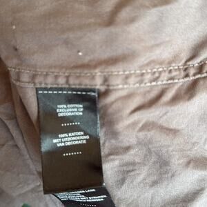 FLAW: 3 stains - 1 on front, 1 on shoulder and 1 on sleeve cuff - see pics.