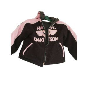 Harley Davidson Girls 5T Jacket Pink Black White Reversible Hooded Embroidered.