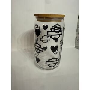 Elevate your drinkware collection with this awesome Harley Davidson inspired beer can glass cup! This unique glass is vinyl wrapped in sleek black, giving it a cool and edgy look that any Harley enthusiast will appreciate.