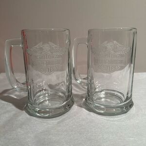 Harley Davidson Glass Beer Stein Drink Mugs Set of 2