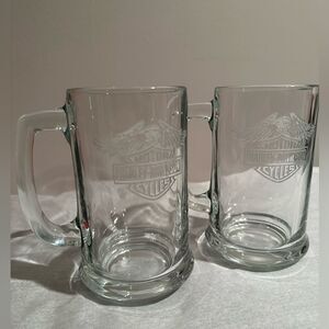 Harley Davidson Glass Beer Stein Drink Mugs Set of 2